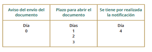 Cabe señalar que las notificaciones electrónicas vía Buzón Tributario se tienen por realizadas al abrir el documento digital, generándose el acuse de recibo electrónico en el que consta la fecha y hora en que la persona contribuyente se autenticó. Cuando ésta no abra el documento digital dentro de los tres días hábiles siguientes a aquel en que le fue enviado el aviso previo, la notificación se tendrá por realizada el cuarto día.