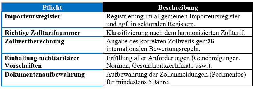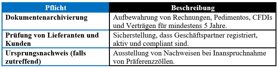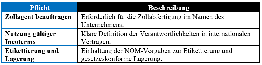 Zusammenfassung der wichtigsten formellen Pflichten für Unternehmen im Außenhandel in Mexiko.