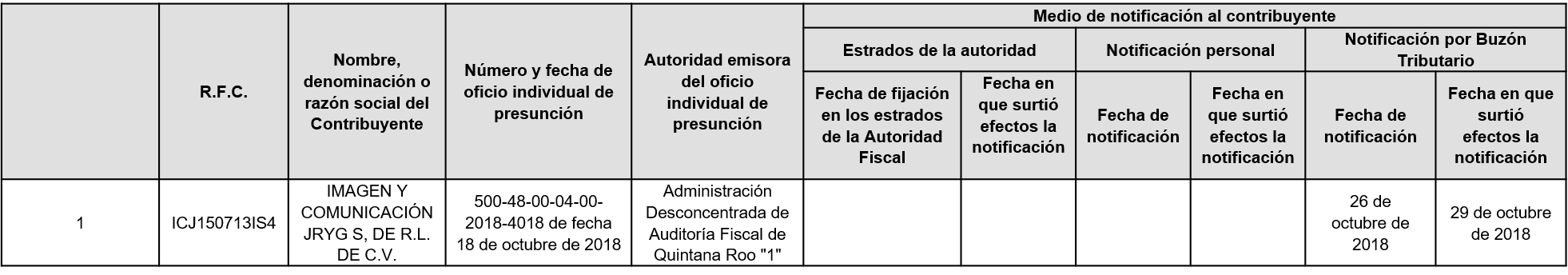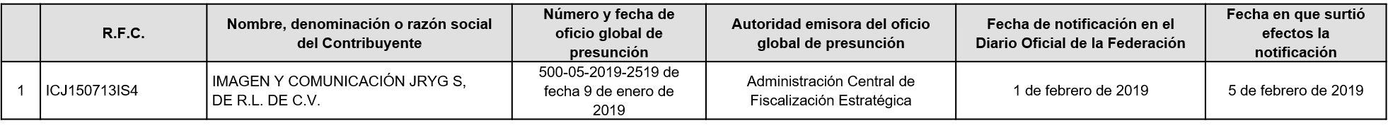 A continuación, en la siguiente tabla se enlistan los contribuyentes a los Anexo 1 del oficio número 500-05-2023-4046 de fecha 31 de enero de 2023 correspondiente a contribuyentes que, SI aportaron pruebas, pero NO desvirtuaron el motivo por el que se les notificó el oficio de presunción, motivo por el cual se actualizó DEFINITIVAMENTE la situación a que se refiere el primer párrafo del artículo 69-B del Código Fiscal de la Federación.